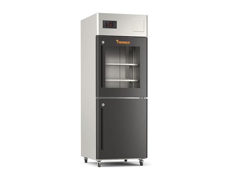 Self-closing glass door (double insulating - low emissivity glass) for refrigerator compartment and self-closing solid door for freezer compartment. Folding magnetic gasket on four sides for perfect closing. Right hand opening or left hand on request. Locks with key.