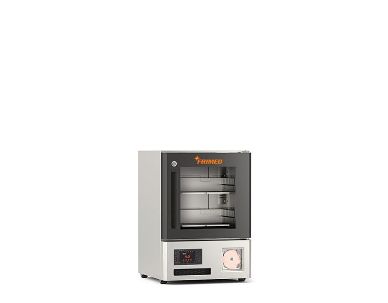 Microprocessor control panel. Display with 0.1°C resolution. Temperature monitoring detected by independent probes. Real time temperature graph (touch screen version). Digital calibration of probes. Visual and audible alarms of high and low temperature (by means of independent probe), open door, condenser efficiency, damaged probes, power failure with recording of data and alarms (by means of back-up battery), damaged or flat battery. Memory of latest alarms visible on display.